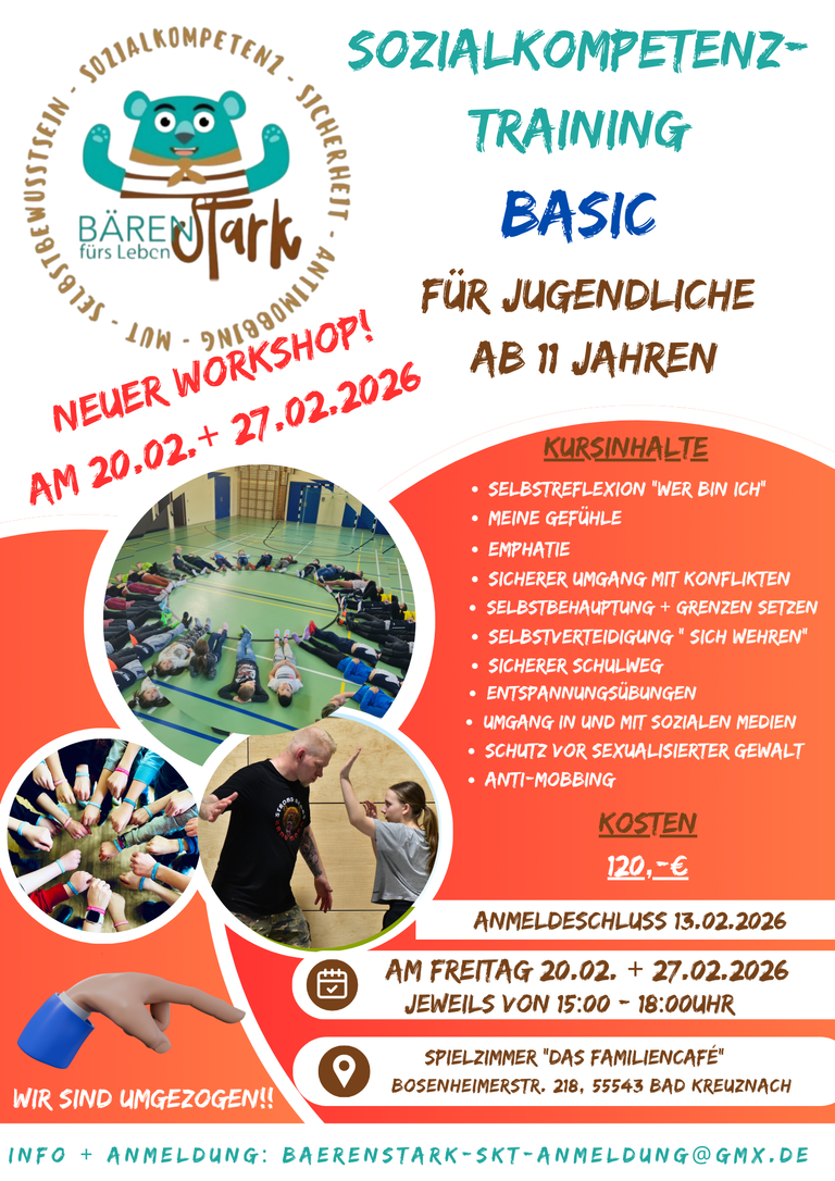 Aus gegebenem Anlass finden unsere Sozialkompetenztrainings nur noch im Workshop- Format und mit mindestens einem Elternteil statt (außer bei den Teens)!